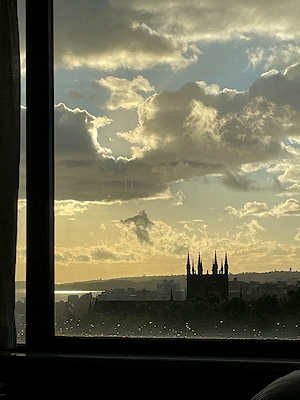 ただ高層階ではなかったので その奥にあるセントメリーズ大聖堂は 尖塔など頭がちょっと見えるだけでした |