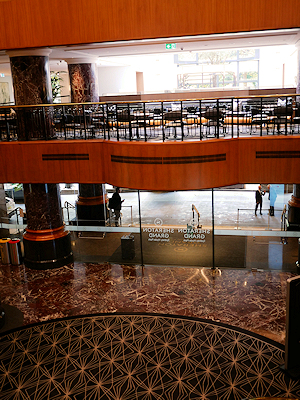 レストランがあるフロアから 下にあるエントランスロビーを見下ろす |
