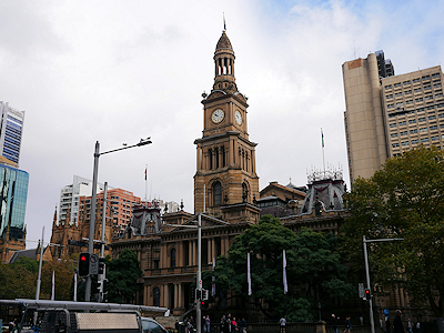 この時計塔がある建物は駅の名前にもなっている タウンホール(シドニー市役所)