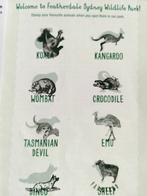 フェザーデール・シドニー・ワイルドライフパーク内を残りのスタンプラリーのハンコがある場所を探しつつもう少し歩いて廻る。