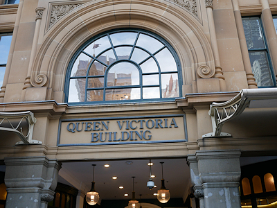 クイーンビクトリア・ビルディング(Q.V.B.)は1898年に建てられた重厚な建物で、現在は大規模な改修が行われショッピングセンターになっている。