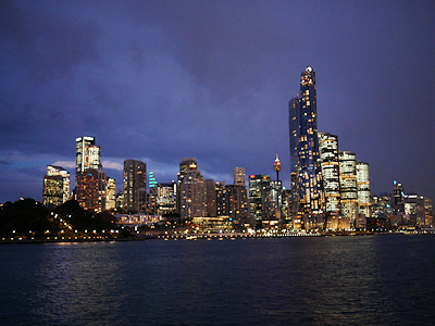| シドニーの高層ビル群の明かり |