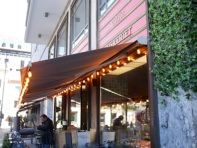 オスロで最初の昼食は夫が事前に調べてきてあったホテル近くのレストランへ行ってみる。 ホテルを出たところにあるアーケードを駅とは反対側に進んだ。