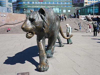 中央駅前の広場に到着 トラのブロンズ像がありました |