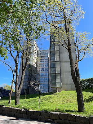 この後は噴水の先に見えていた豪快なデザインの新しい建物を1つ見学する。