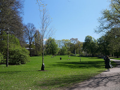 | バス停の前は緑が美しい公園でした |
