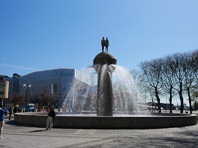 オスロ中央駅の隣にあるクリスチャン・フレデリクス広場の噴水