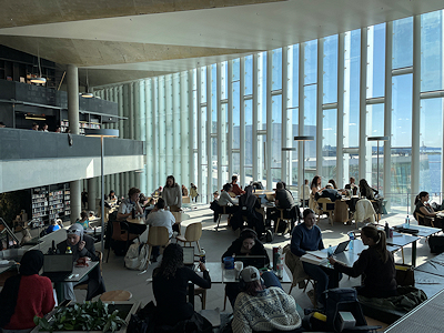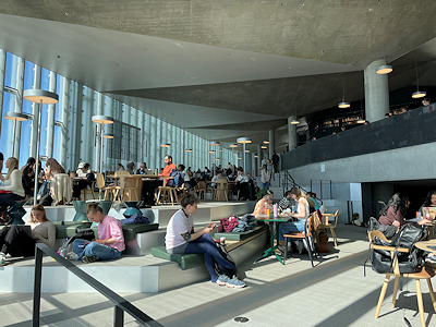 最近の図書館は静かに本を読み勉強するだけではない施設としてつくられることも多く、前年に見学したヘルシンキの図書館と構成なども似ていたけれど、街の公共図書館はこういったものが愛されていくのかもしれない。