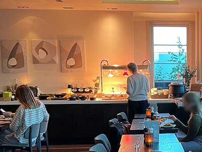 このホテルでは宿泊料金に先程利用したFikaの他に軽い夕食も含まれているのだ。 20時くらいになっていたけれど、この日は週末だったので夕食のサービスは21時までやっていた。