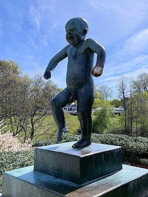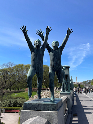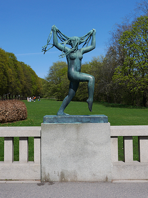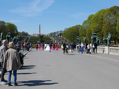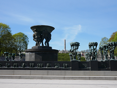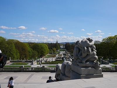この後はモノリスの台地を降りて、公園のメインゲートへ向かう。 モノリスの台地からフログネル公園のメインゲートへまっすぐ延びる道沿いには多くのヴィーゲランの彫刻が配置されている。