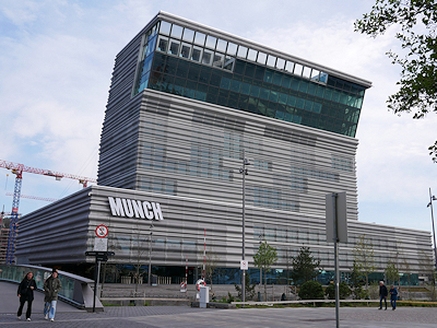 | 橋を渡った所から振り返ってムンク美術館をみる |