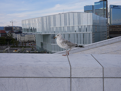 | オスロ公共図書館とカモメ 図書館から見たオペラハウスはこちら↓