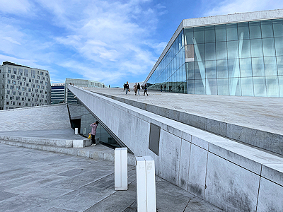 白い大理石を用いた氷山を模したという外観の建物で、海沿いの遊歩道からスロープを上がって、オペラハウスの屋上へ行くことが出来る。