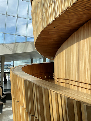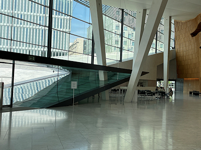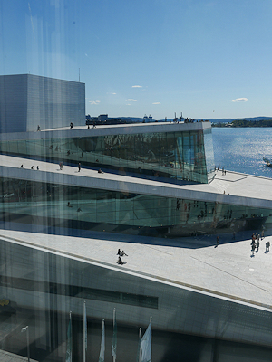 ムンク美術館を見学した後は、美術館を出てすぐの橋を渡ったところに建つオペラハウスを見学する。
