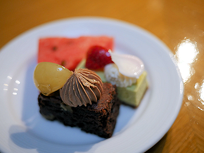 | チェックインした時にラウンジで頂いたプチケーキと果物 |