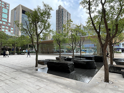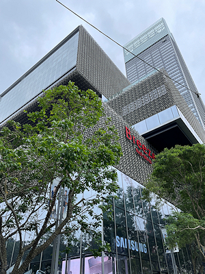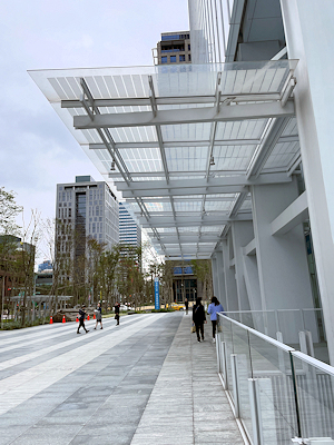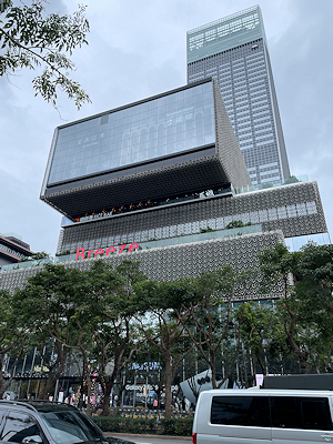 私たちが前回2018年に台北を訪れた際にはもちろん既に開業していたのだけれど、遠くから見ただけだったので竹の節のような上の部分の印象しかなく細長いタワーなのかと思っていた。 今回初めてその全貌をみたのだけれど、足元に低層の商業棟が併設されているとは知らなかった。