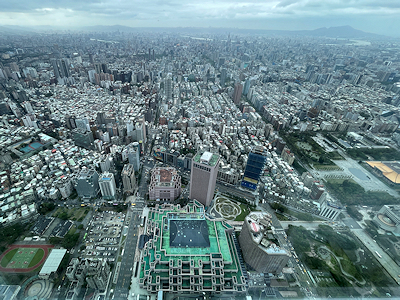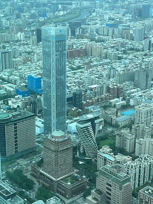 先程見学した富邦タワー/レンゾ・ピアノ・ビルディング・ワークショップ設計も見えました その近くに建つねじれた外観の超高級マンションも見えます |