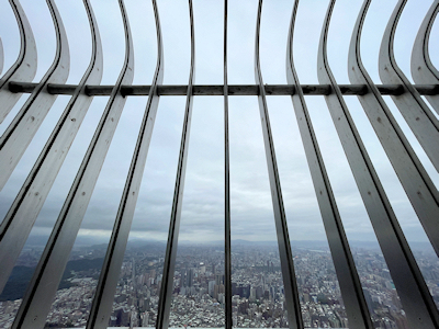 | 台北101の屋外展望台から、さらに上層階を見上げる |