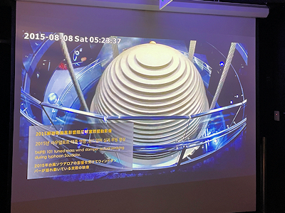 2015年に台風が直撃した際に、揺れて機能している装置の様子を撮影した映像が流れていました |