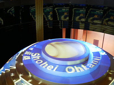 その装置が見学できるエリアへ行ったら、巨大な球体には大谷選手の50-50への軌跡を紹介する映像が投影されていた。