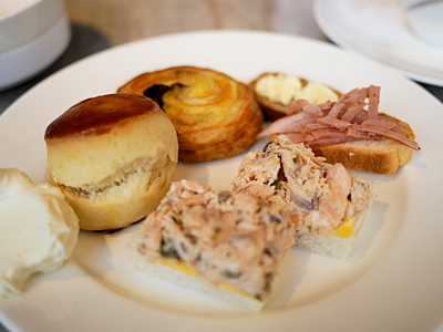 | この日は昼食抜きだったので、アフタヌーンティーのしょっぱい系の料理(セイボリー)も頂きました |