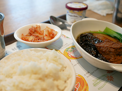 ご飯とおかずのセットや麺料理などの主食から1品、飲み物もビールなどを含んだ数種類の中から1品選べて、他に小皿とハーゲンダッツのアイスが付いていた。