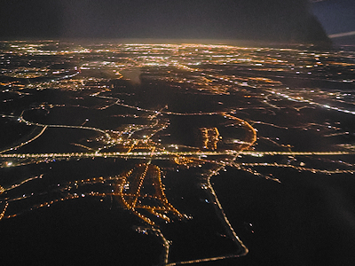 ということで窓側に座ったので写真を 離陸して少し経った頃 もう真っ暗です |