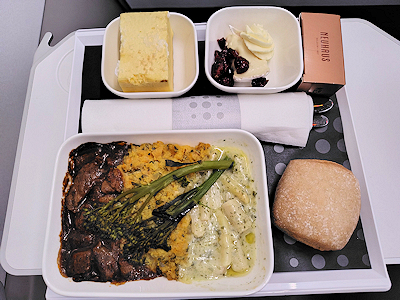 ありゃま…とは思ったけれど、最初に発券した際は隣りの席だったといっても短距離便のビジネスクラスなので、エコノミーと同じ3席並びの席の真ん中に人が座らないようした配列の窓側とひとつ空けて通路側の席だったので、実際の距離的には同じくらいかもしれない。