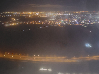 それなので今回はもう真っ暗だったので、全く違う風景ですが、1年以上前にブリュッセル航空の飛行機に乗った時の写真を載せます